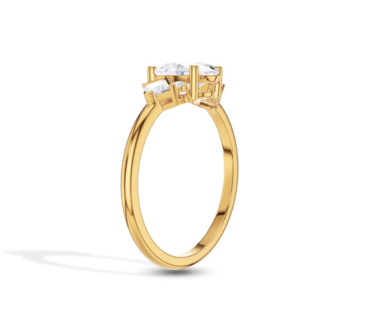 Pear and Pear Cut Asymmetrical Diamond Toi et Moi Ring
