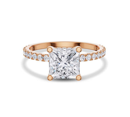 Radiant Cut Hidden Halo Ring with Pave Diamonds