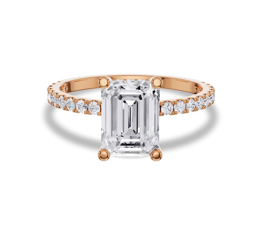 Emerald Cut Hidden Halo Pave Engagement Ring